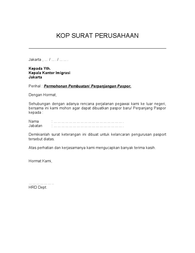 Contoh Surat Pengantar Pembuatan Paspor Dari Perusahaan Otosection